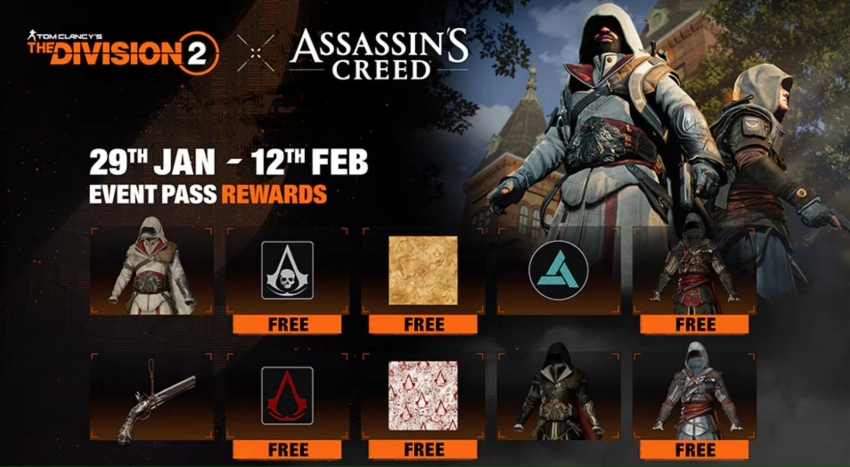 Обложка: скриншот The Division 2С 29 января по 12 февраля в The Division 2 пройдёт кроссовер с серией Assassin’s Creed. Временное событие представляет собой пропуск из двух цепочек прокачки с разнообразными предметами в духе знаменитой франшизы Ubisoft. Часть из них, включая раскраски оружия и нашивки, можно получить абсолютно бесплатно.