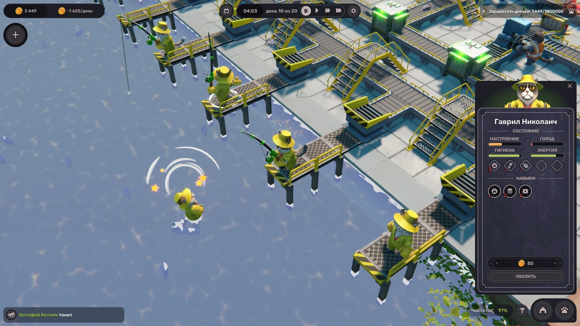 Котовчанам сложно даются трудовые будни, ведь у них лапки. Тем более на предприятии делают рыбные консервы. Как тут устоять и не сожрать продукцию? Линия конвейера словно предназначена для весёлых «покатушек», а на станках так удобно спать.
