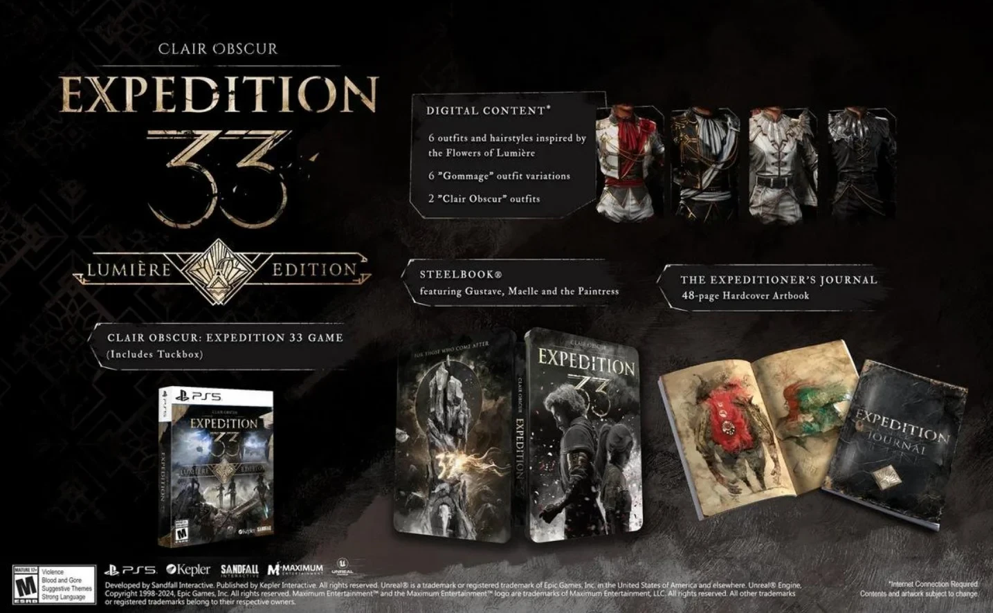 Новый тираж Clair Obscur: Expedition 33 Lumiere Edition будет продаваться исключительно с версией для PlayStation 5 — издание обойдётся в 70 долларов и предоставит Deluxe-косметику, которую можно приобрести в цифре. В наборе не будет карточек, зато стилбук остался на месте. Главная особенность Lumiere Edition — артбук, который насчитывает 48 страниц и оформлен в виде дневнике участника экспедиции.