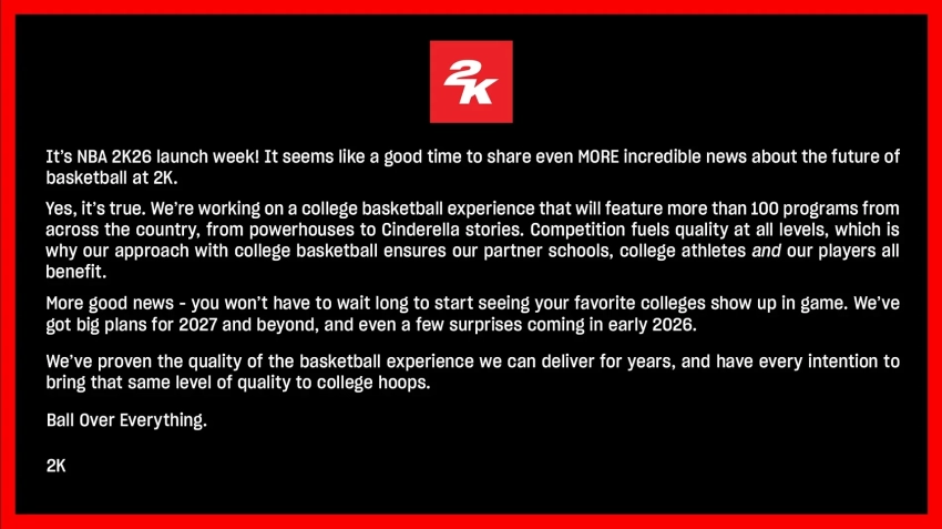 В четь релиза NBA 2K26 в 2K Games анонсировали новый симулятор студенческого баскетбола