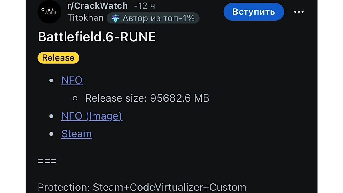 Обложка: Battlefield 6Спустя несколько месяцев после релиза пиратам удалось взломать Battlefield 6. Взлом осуществила группа Rune, о чем сообщили в сообществе Reddit CrackWatch.